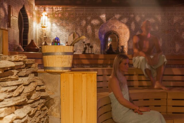 De stoom zorgt dat het warmer lijkt in de cabine. Als je op een hoger bankje zit zal de stoom zelfs als een warme deken over je neerdalen. Dat is een van de redenen om als beginner op een lage bank te gaan zitten. Zo kun je rustig wennen aan de sensatie.