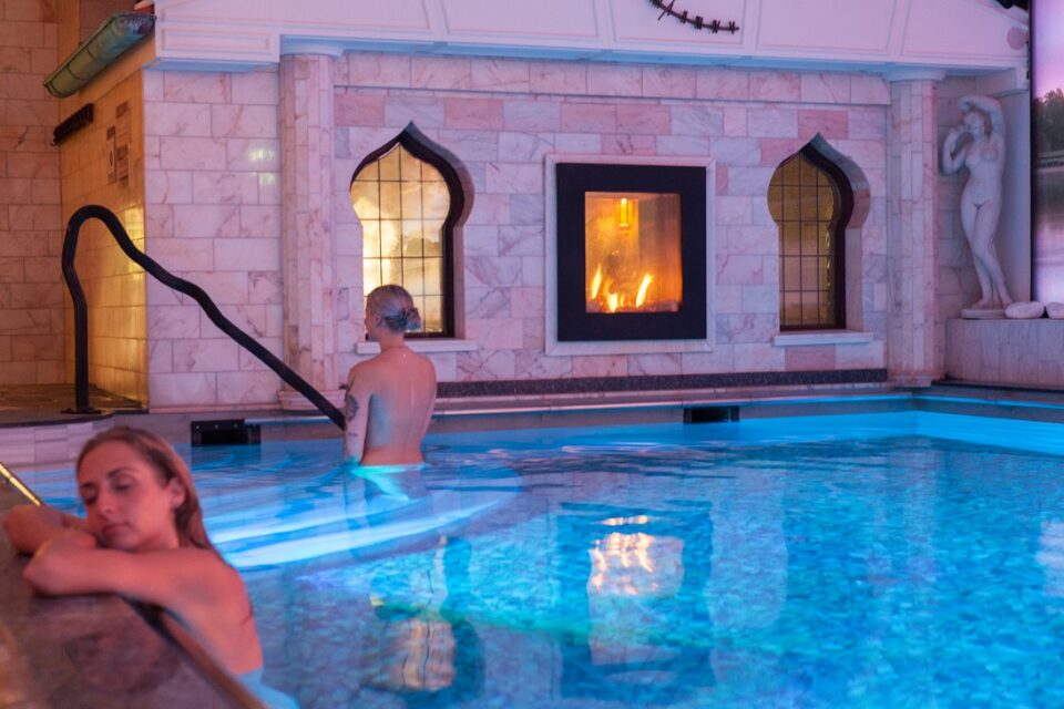 Tussen je saunarondes door kun je heerlijk ontspannen in ons verwarmde zwembad. Met een watertemperatuur van 34 graden is het bad aangenaam warm en ideaal om je spieren te laten ontspannen. Strek lekker wat baantjes of kom volledig tot rust in de gezellige zithoek bij het zwembad, waar je comfortabel kunt loungen en genieten van de rustgevende sfeer.