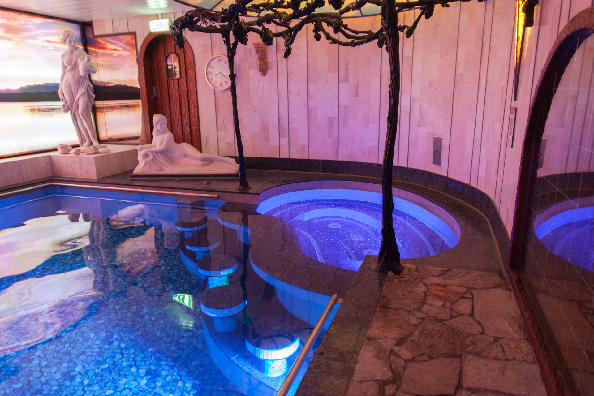 De voormalige whirlpool is wel gewoon te gebruiken als zithoek, de waterjets doen het wel. Ook het zwembad is normaal te gebruiken.